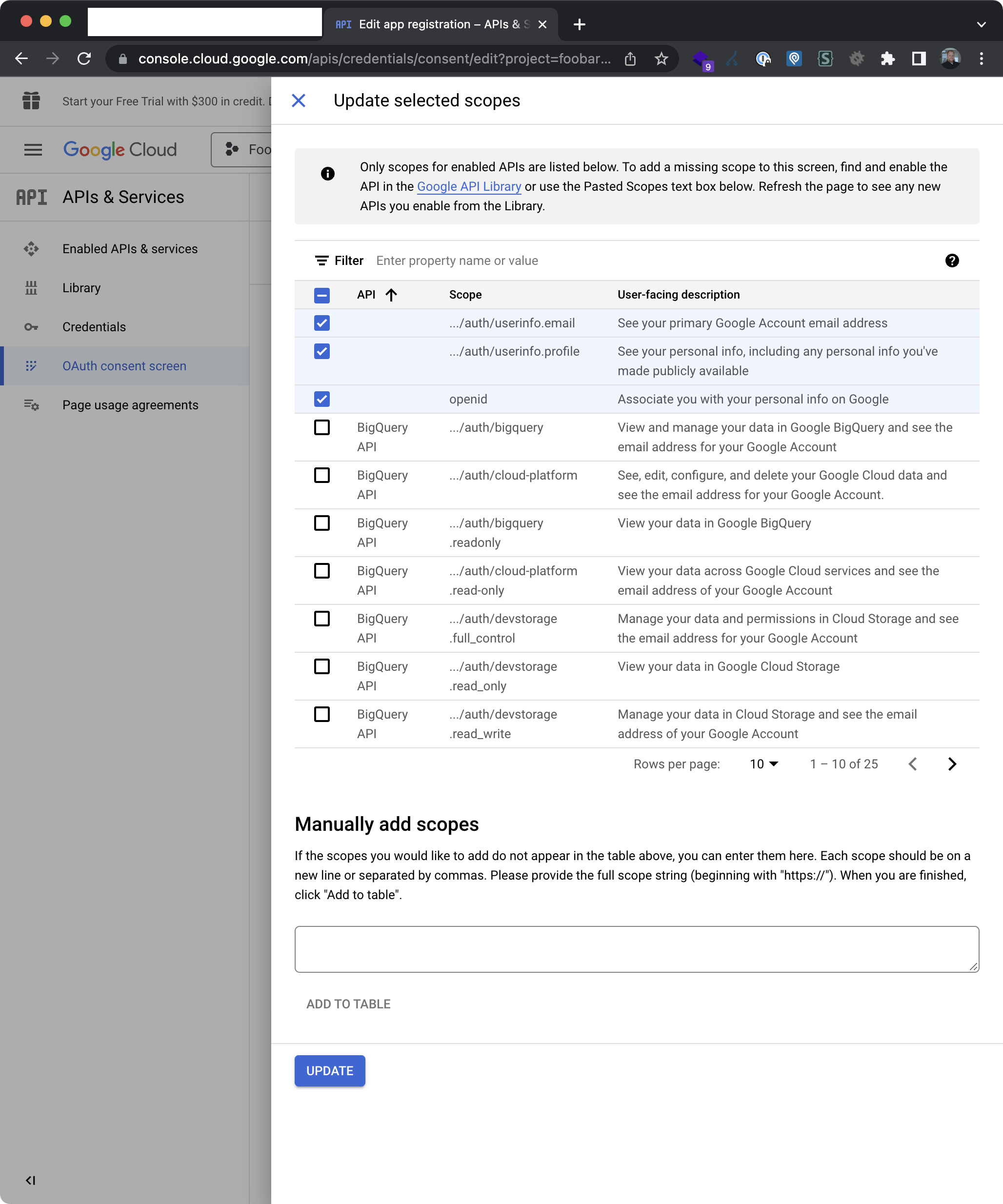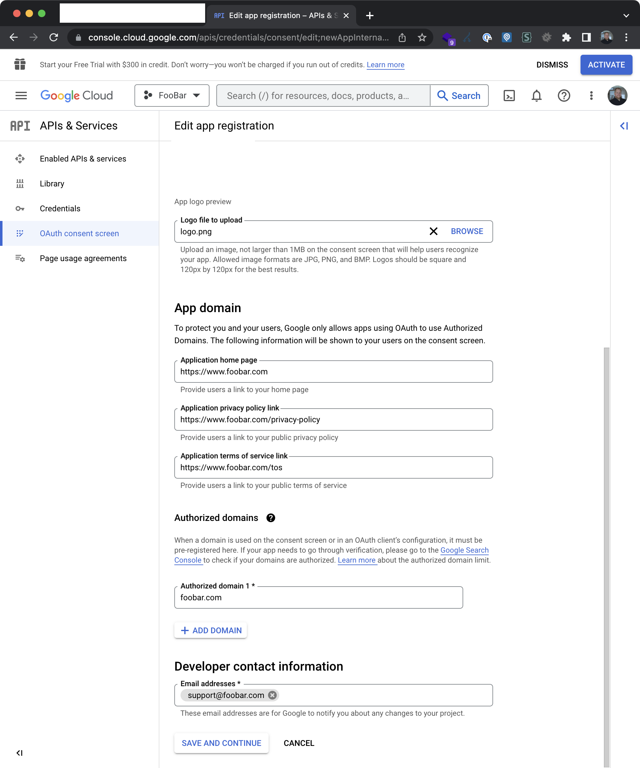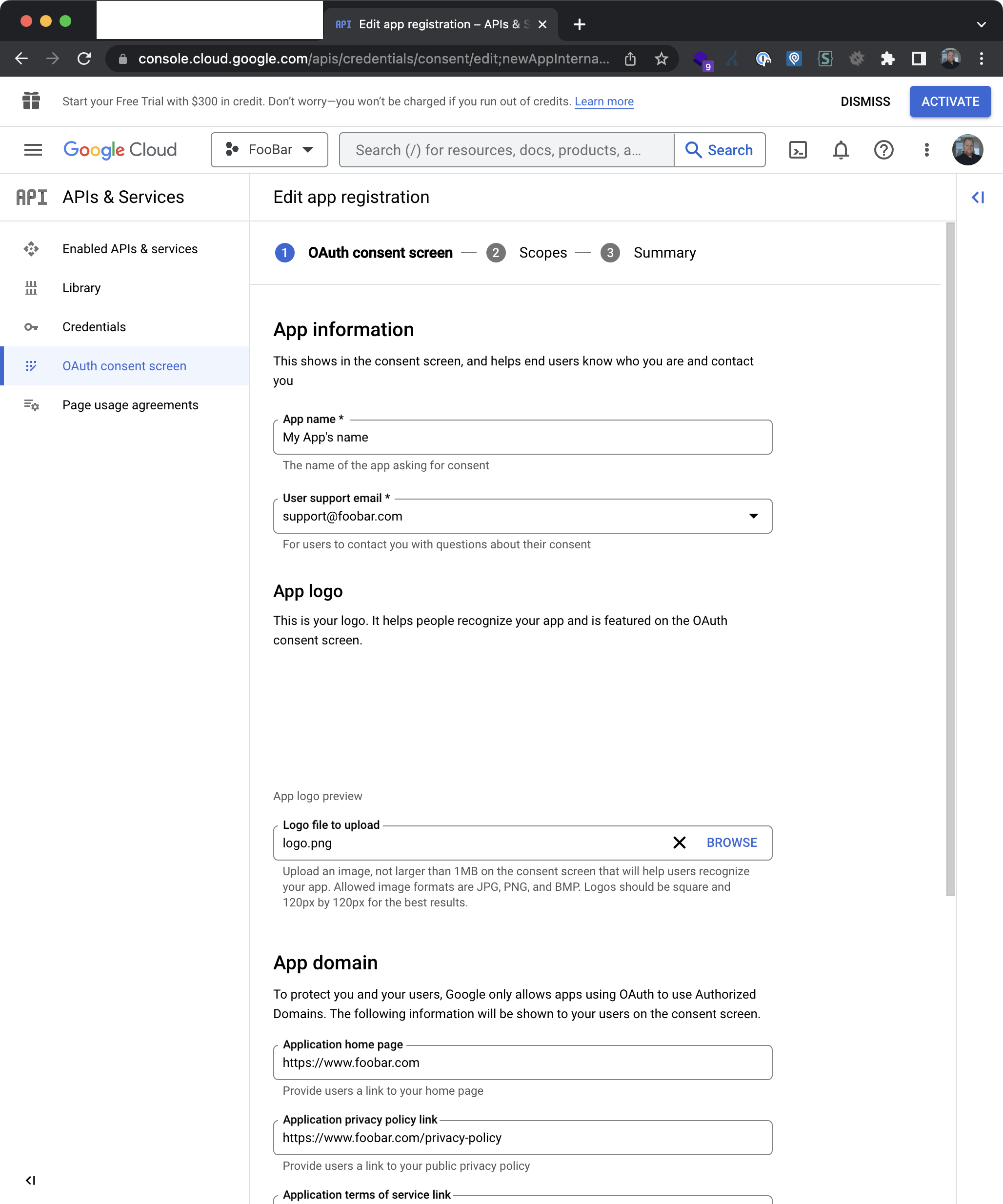 public string $domain = 'YOUR-GSUIT-DOMAIN.com'; // <-- foobar.com in the credentials.md example |