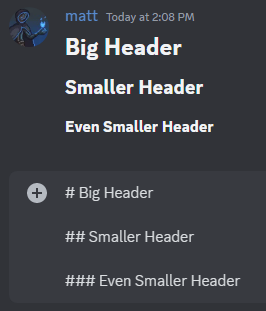 To create a header, you need to include a specific number of the hash/pound sign character (#). Use (#) for a big header, (##) for a smaller header, or (###) for an even smaller header as the first character(s) in a new line.