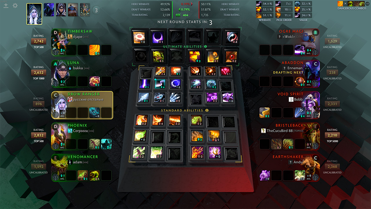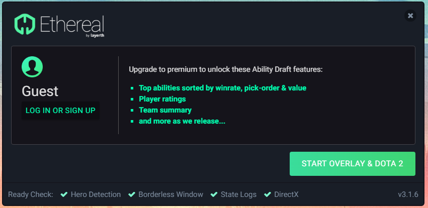 Si todo se ve bien logueado (o no) clickea el “Start Overlay & Dota”. Cuando draftees (aunque hay otras características las principales son alrededor de drafting actualmente) un overlay será agregado al draft que se verá así.
