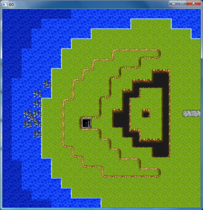 RPGツクール用の素材をそのまま使えるようにしたので、海タイルや滝タイルは3枚のアニメーションです。この静止画を見ても分かりませんが、