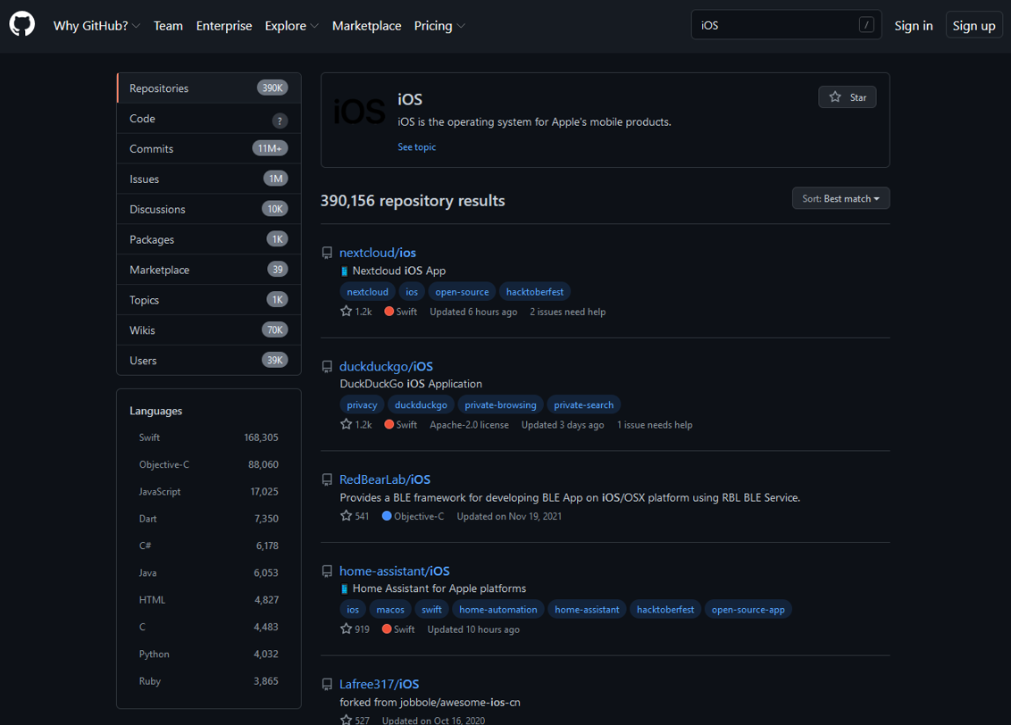iOS (390K repositories)