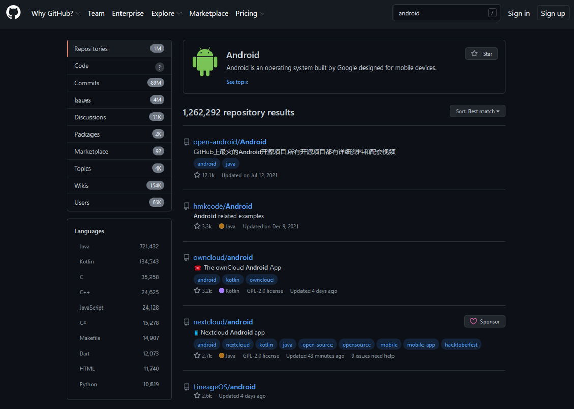 Android (1M repositories)