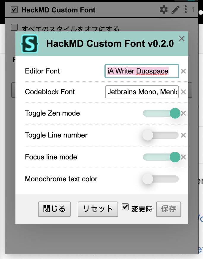 https://gist.github.com/Yukaii/946aeee91febde6aecb95a900b315d91/raw/hackmd-font-customize.user.css