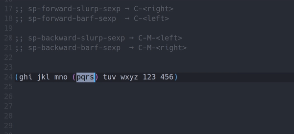 An animated cheatsheet for smartparens using the example configuration specified here by the smartparens author. Inspired by this tutorial for paredit.