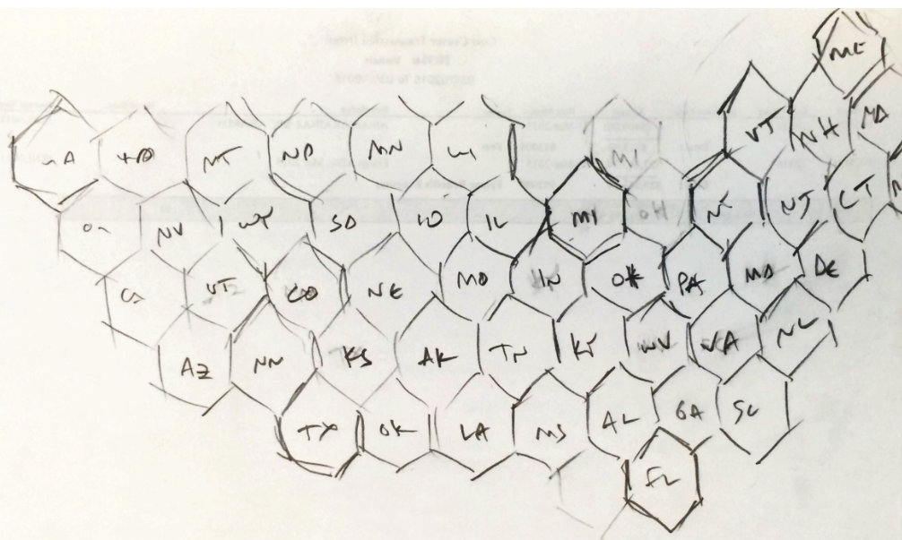 Here is Brian’s first quick pencil sketch of a possible state layout using hexagons: