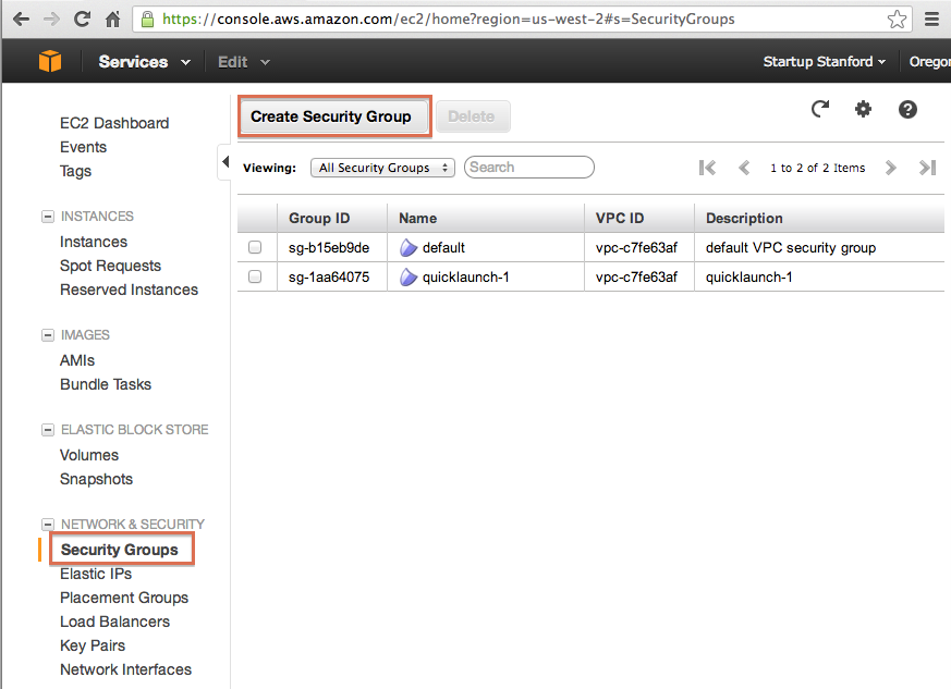 Go to the EC2 Dashboard to set up a new security group. Apply the new security group to an existing instance. Instances > select your instance > Actions > Change Security Group > select the new security group