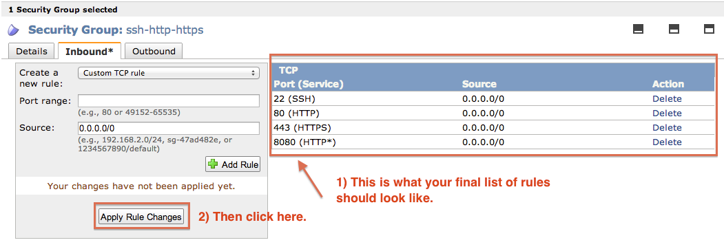 Go to the EC2 Dashboard to set up a new security group. Apply the new security group to an existing instance. Instances > select your instance > Actions > Change Security Group > select the new security group