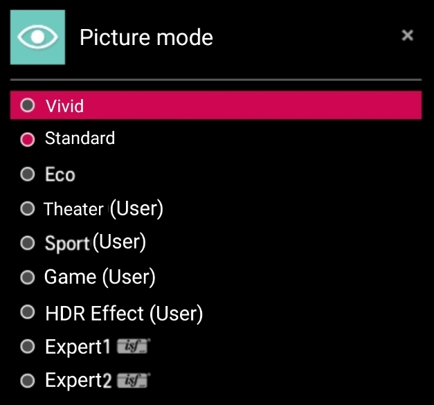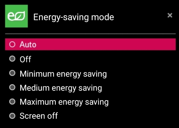 luna-send-pub -f -n 1 luna://com.webos.service.applicationManager/launch '{"id":"com.webos.app.tvhotkey","params":{"activateType":"energy-saving-mode"}}'