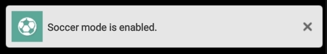 Turns on soccer mode (changes sound mode and picture mode to soccer). Activating the same command again will turns soccer mode off.