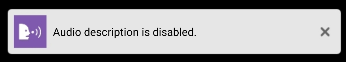 it will display a Toast saying Audio description is enabled.. Activating same command will display a toast saying Audio description is disabled..