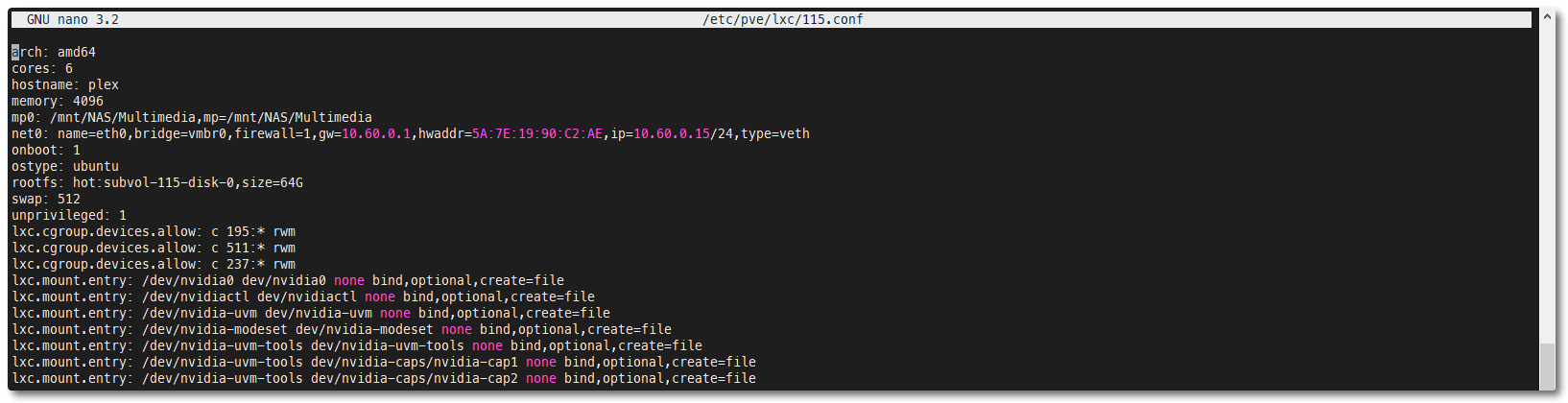 lxc.mount.entry: /dev/nvidia-modeset dev/nvidia-modeset none bind,optional,create=file