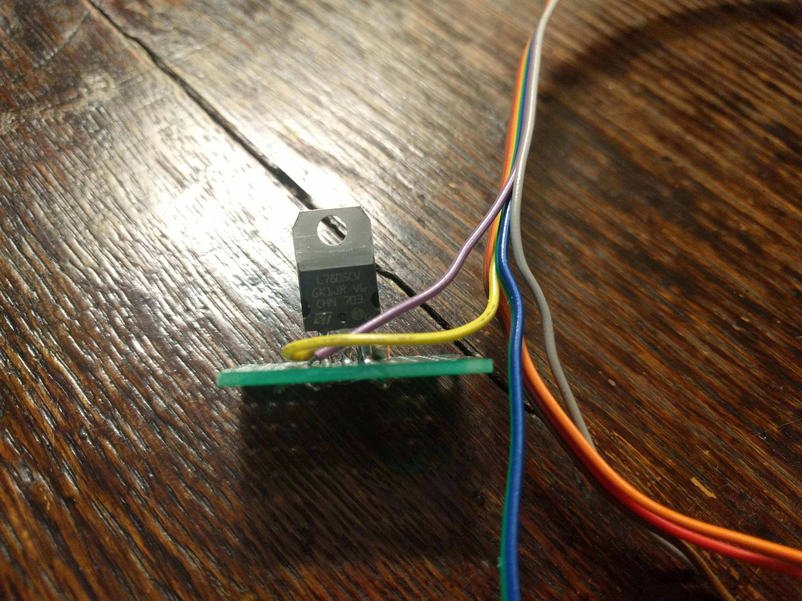 - Linear voltage regulator (L7805CV) to step down the board's output voltage of about ~15v down to 5v