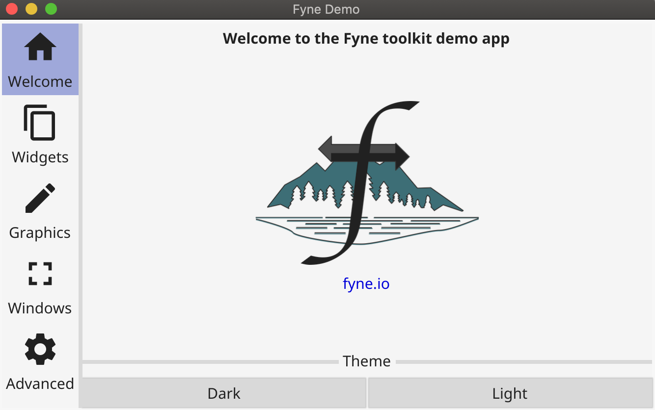 widget.NewButtonWithIcon("button", theme.NewThemedResource(fooSvg, nil), func() { /* do something */ })具体的な例については, 記事の最後に記載しているサンプルのアプリケーションなどを参考にしてください.