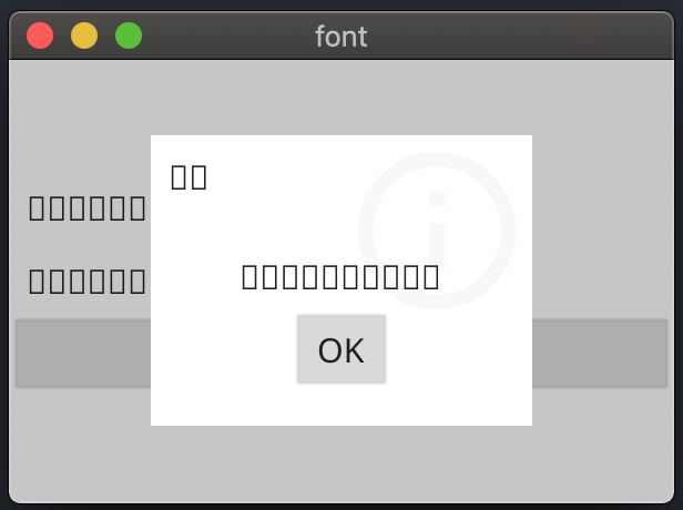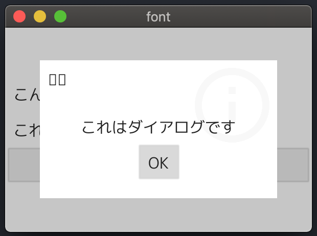 この画像ではダイアログのタイトルがまだ正しく表示されていないですが, これはダイアログが Bold フォントを使用するようになっているためです. 前述の例では Regular のみ指定設定しているためこのようになっています.