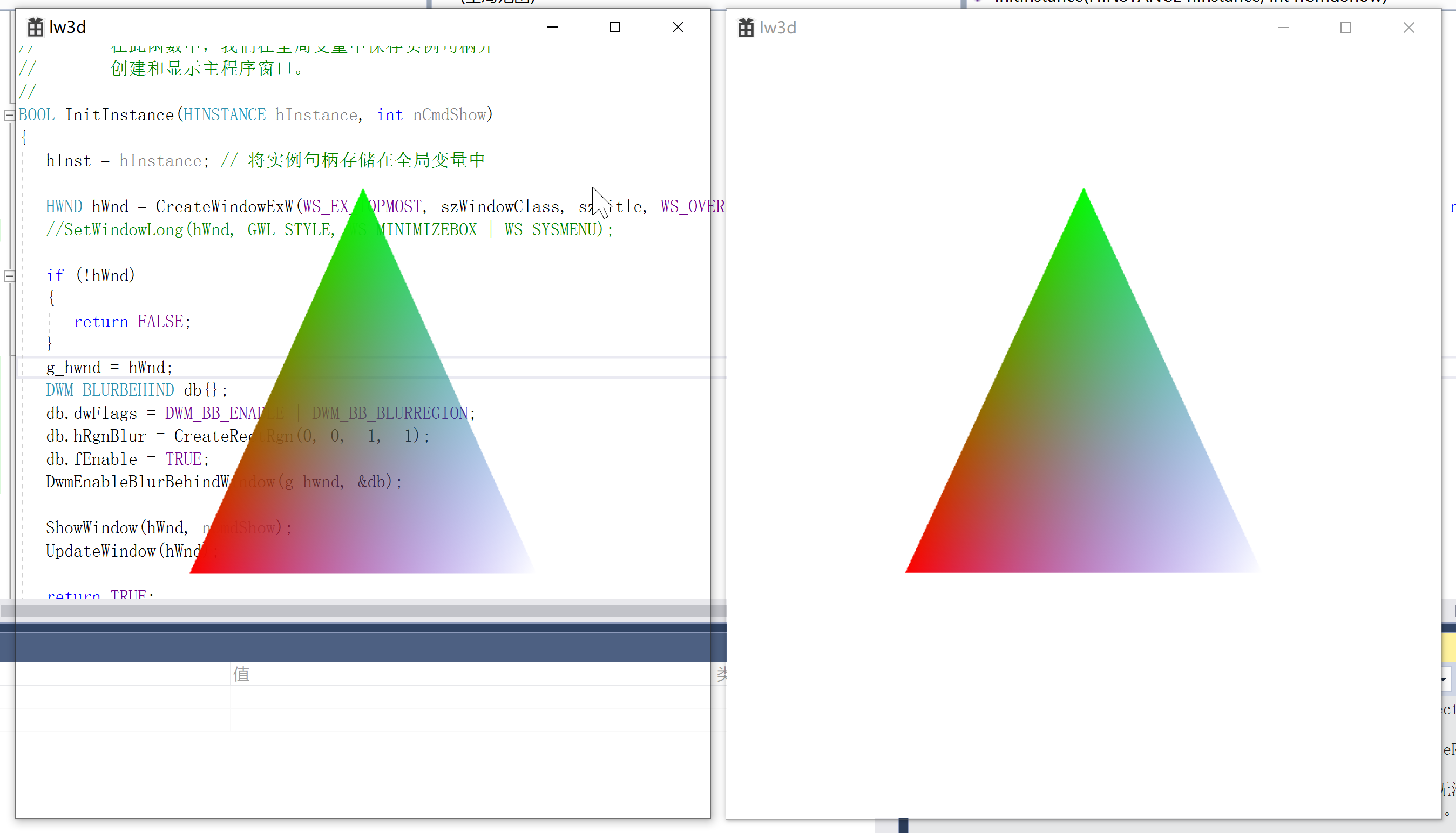 这跟第一个API的区别是只有将边框隐藏掉(下面的方法)才有透明效果,否则它只会让窗口边缘上只有1像素宽的黑框消失(在Win10上是这样的),而且背景是窗体的颜色(一般是纯白色),不会有透明效果。