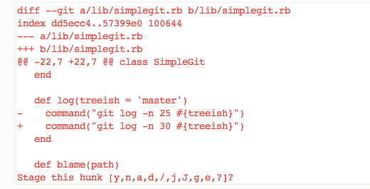 At each point, you will be asked whether you want to "stage this hunk". Here are the commands you can use: ####commonly used commands