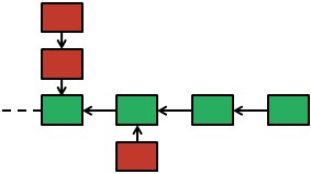 The above picture represents a blockchain. Blocks in green compose the main chain, and blocks in red compose orphan chains.
