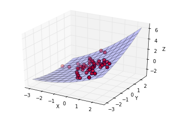The example shows how to determine the best-fit plane/surface (1st or higher order polynomial) over a set of three-dimensional points.