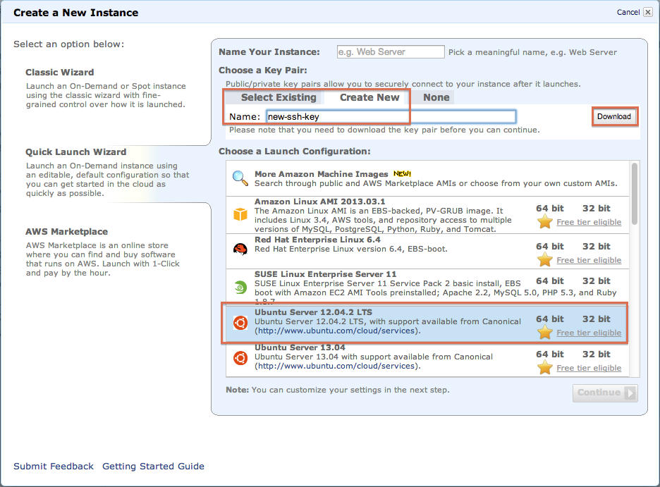 Create an EC2 instance with the quick launch wizard