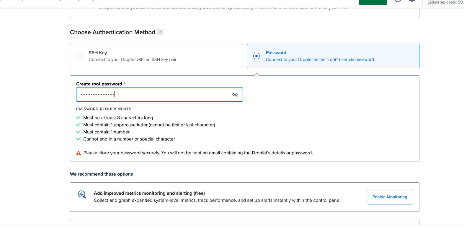 Click on the create > Droplet