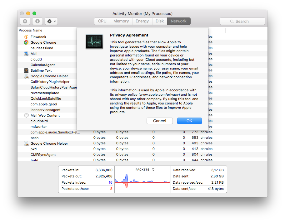 In order to understand a problem on Mac, it is sometimes useful to get a full system diagnostics. Apple provides an interface to generate extensive diagnostics about many system services and features. To generate a full system diagnosis, follow these instructions.