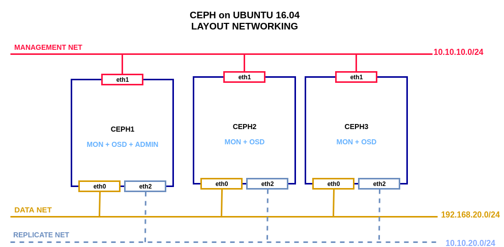 - Data Network: sử dụng để các máy client có thể truy cập và sử dụng tài nguyên lưu trữ trên Ceph.