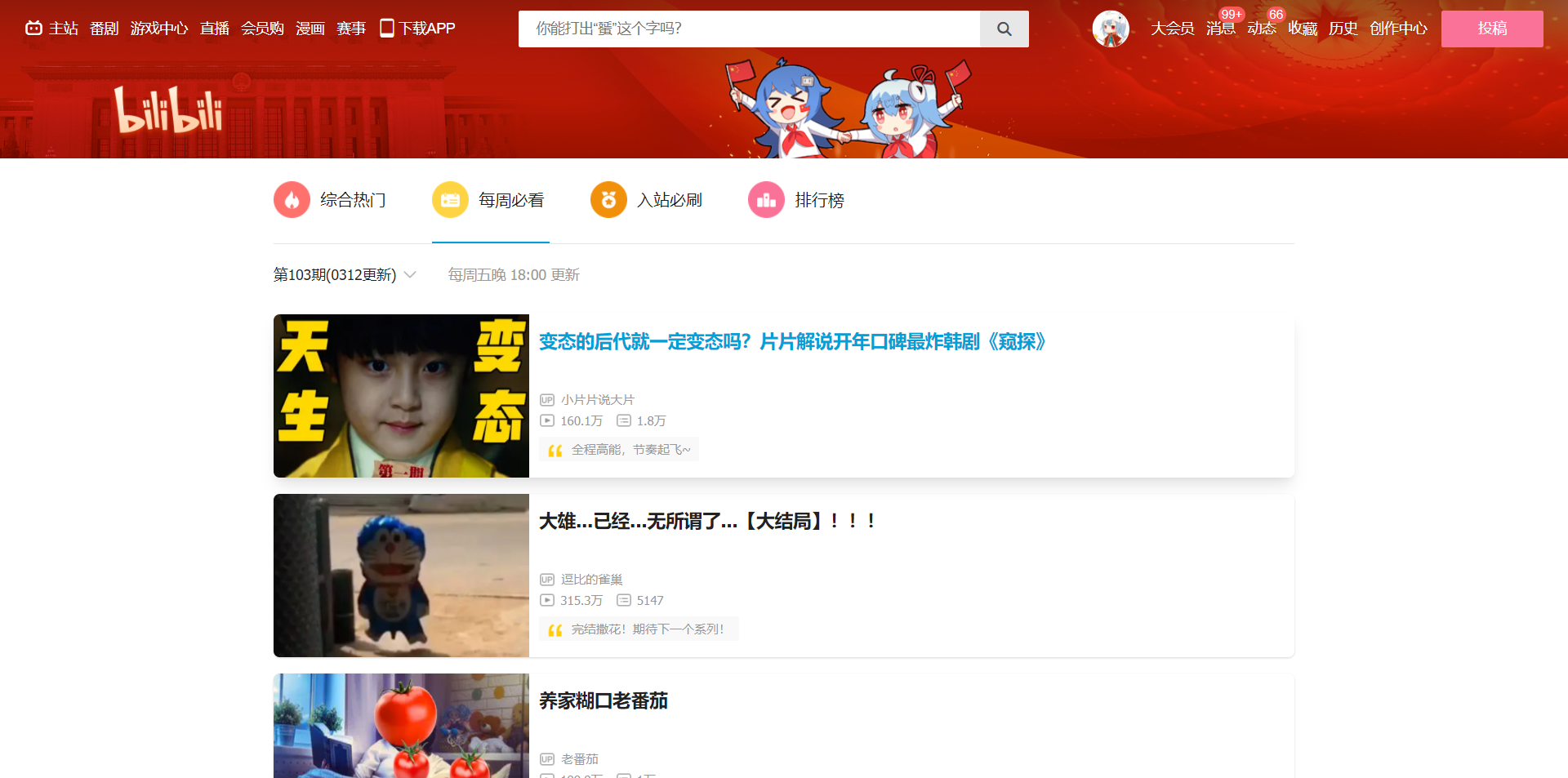 | // @match https://www.bilibili.com/v/popular/weekly* | |